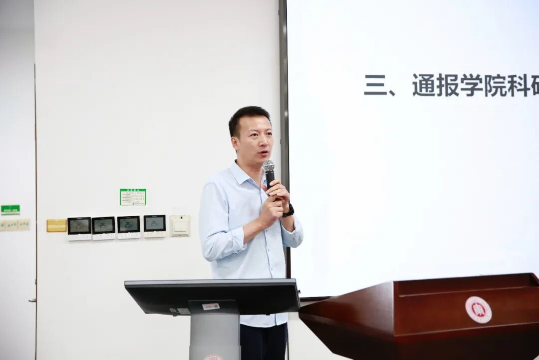 随后,副院长赵朝永重点通报了学院科研情况。他系统梳理分析了“十四五”期间学院各系部科研工作的情况,强调在制定“十五五”规划的关键时期,学院科研工作要坚定服务“国之大者”,强化夯实传统优势,奋力突破创新赛道,有效实现AI赋能。全体教师要强化科研使命感,紧抓机遇,锐意创新,力争取得重要成果的新突破。