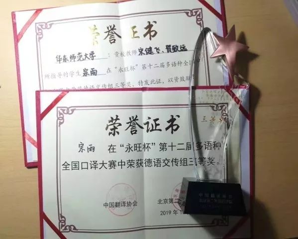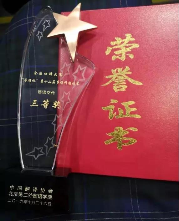 2019年10月26日,“永旺杯”第十二届多语种全国口译大赛在北京第二外国语学院落下帷幕,美女自慰-美女直播自慰 德语系本科生宗雨同学表现优异,取得了三等奖的佳绩。