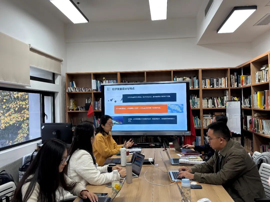 褚晓琳博士首先从地理区位、经济结构、宗教文化、对外关系及国际参与等方面系统介绍了太平洋岛国的基本概况,重点介绍了太平洋岛国的经济与社会概况。她指出,太平洋岛国在经济发展过程中普遍面临结构单一、基础设施薄弱和人才流失等挑战;针对这些问题,太平洋岛国积极推动区域一体化、资源共享与国际合作,以寻求可持续发展之道。随后,褚晓琳结合“小国外交”理论,深入剖析了太平洋岛国通过“渔业外交”实现国家利益的策略与特征,揭示了渔业资源在其外交实践中的重要地位。此外,她还探讨了这一策略对中国渔业政策与对外合作的启示,为同学们提供了新的研究视角和思考方向。