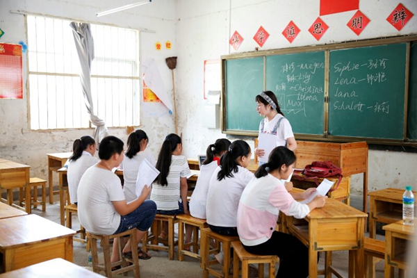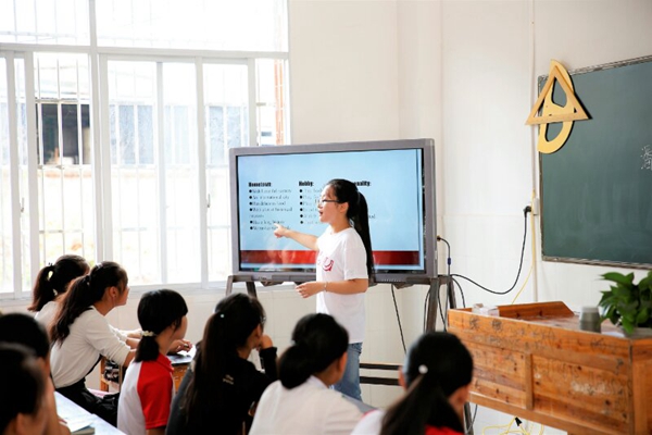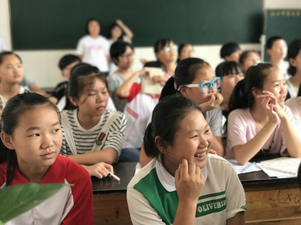 一天的课程,志愿者们紧张而忐忑,期待而热情,将所学以各种形式的课程带给了江口中学的莘莘学子们。一位学生今天课后给我们送上这样一段鼓励:“零距离,简单的三个字,便足以概括我这一天来的感受。这是同学与老师之间的零距离,早已模糊了原本庄严肃穆的师生界限。悄然化开了一圈纯纯的友谊,我们可以大肆在老师面前欢笑。还有的,便是我们与英语之间的零距离。身处农村的我们,视野非常狭窄,所能获取的英语方面的知识仅局限于课本之中,枯燥乏味的单词泯灭了我们对于英语的兴趣。今天的这一天课下来,老师给我们开启了一扇英语世界的大门。口语课、影视课、戏剧课等充盈着浓厚的趣味性,这才惊觉,原来英语可以如此有趣。”