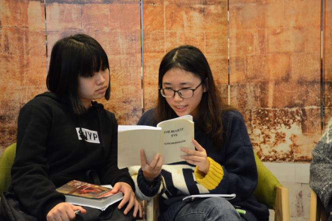 2017117日、1129日、1130日,校文化建设项目“樱桃河左岸读书交流活动”之一A Salon of Literary Interpretation: The Legacy of History and the imprint of Racial Conflict的师生系列读书会在涵芬楼阅读体验中心如期举行。2015级、2016级英语系的同学在金衡山老师和陈俊松老师的带领下,一起走进了The Bluest Eye , Gone with the wind, The Joy Luck Club的文学世界。