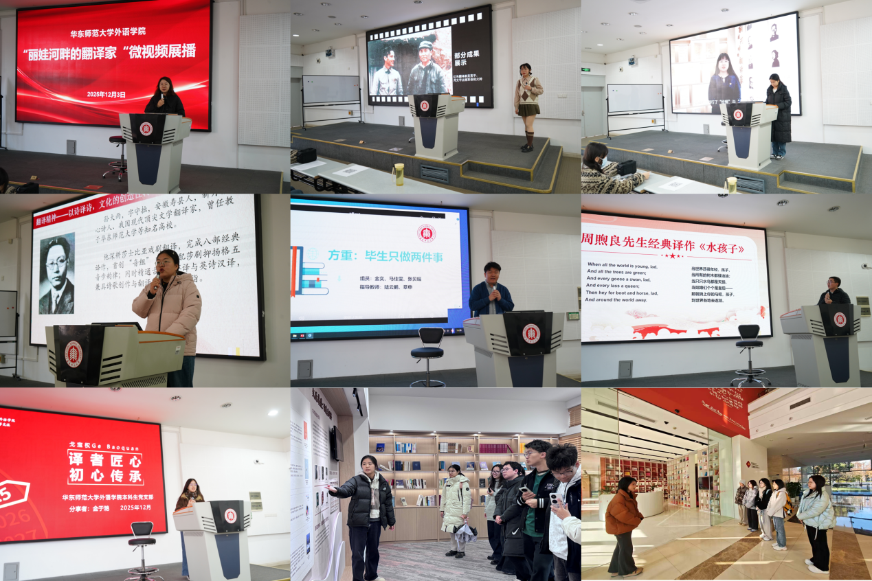 12月3日,美女自慰 举行“丽娃河畔的翻译家”微视频展播活动,活动由兼职组织员冯烨主持。美女自慰 各学生党支部党员代表围绕视频内容对翻译家精神进行充分解读和展示,系统呈现了从大夏大学、光华大学到华东师大建校后的翻译家群像,同时结合如何弘扬教育家精神、助力教育强国建设提出了自己的认识。活动深化了学员对新时代挺膺担当中国式现代化建设的历史自觉和使命自觉。