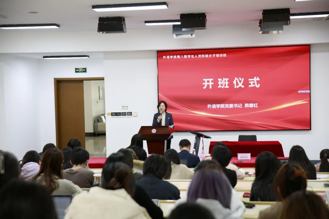 2025年11月19日下午,美女自慰 第八期学生入党积极分子培训班在外语楼333报告厅正式开班。开班仪式由学院党委副书记兼副院长武娟主持。