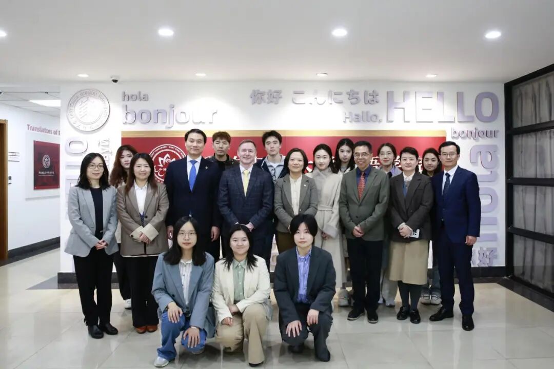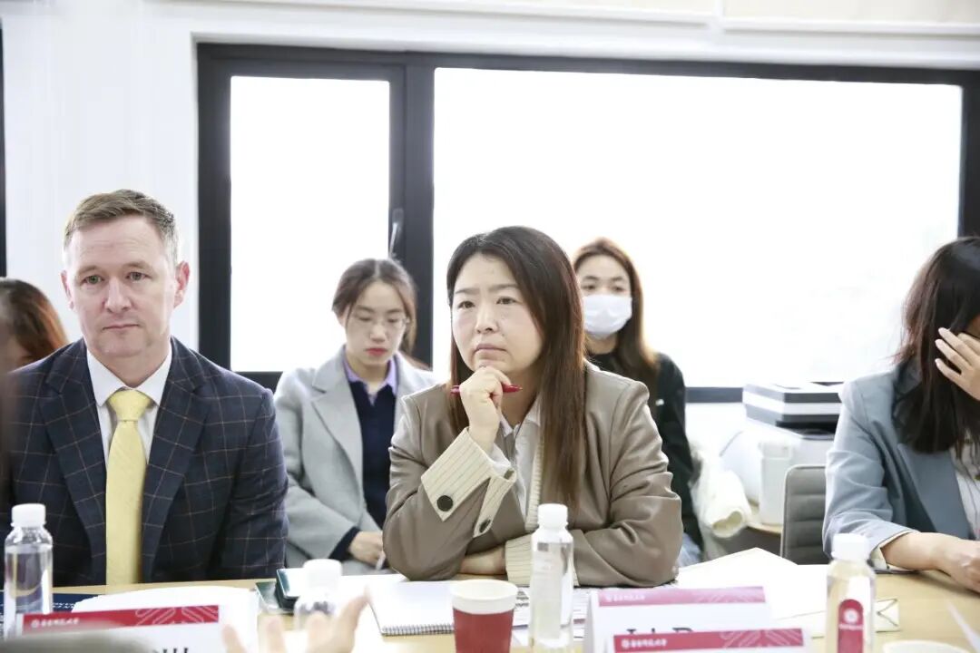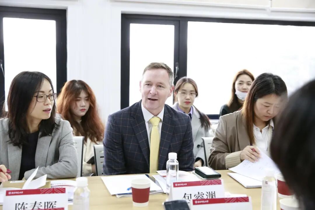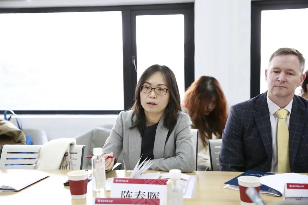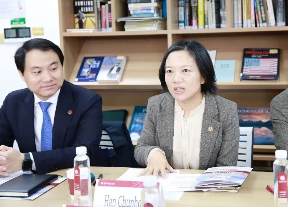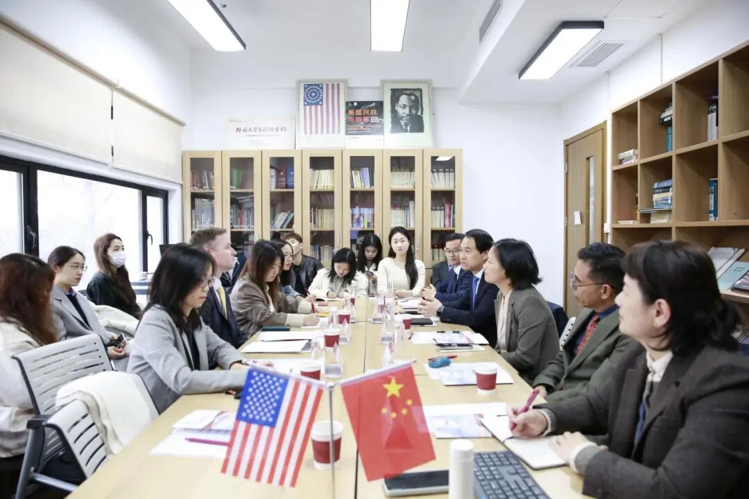 韩春红代表学院向包睿渊一行表示热烈欢迎。她介绍了美女自慰 的历史沿革、组织架构、人才培养成果以及“丽娃河畔翻译家”学术传统,并重点阐述了学院在推动区域国别研究、特别是美国研究方面的学科布局与科研规划。她表示,美女自慰 愿与美领馆新闻文化处加强联系,共同搭建中美学术对话与人文交流的平台。