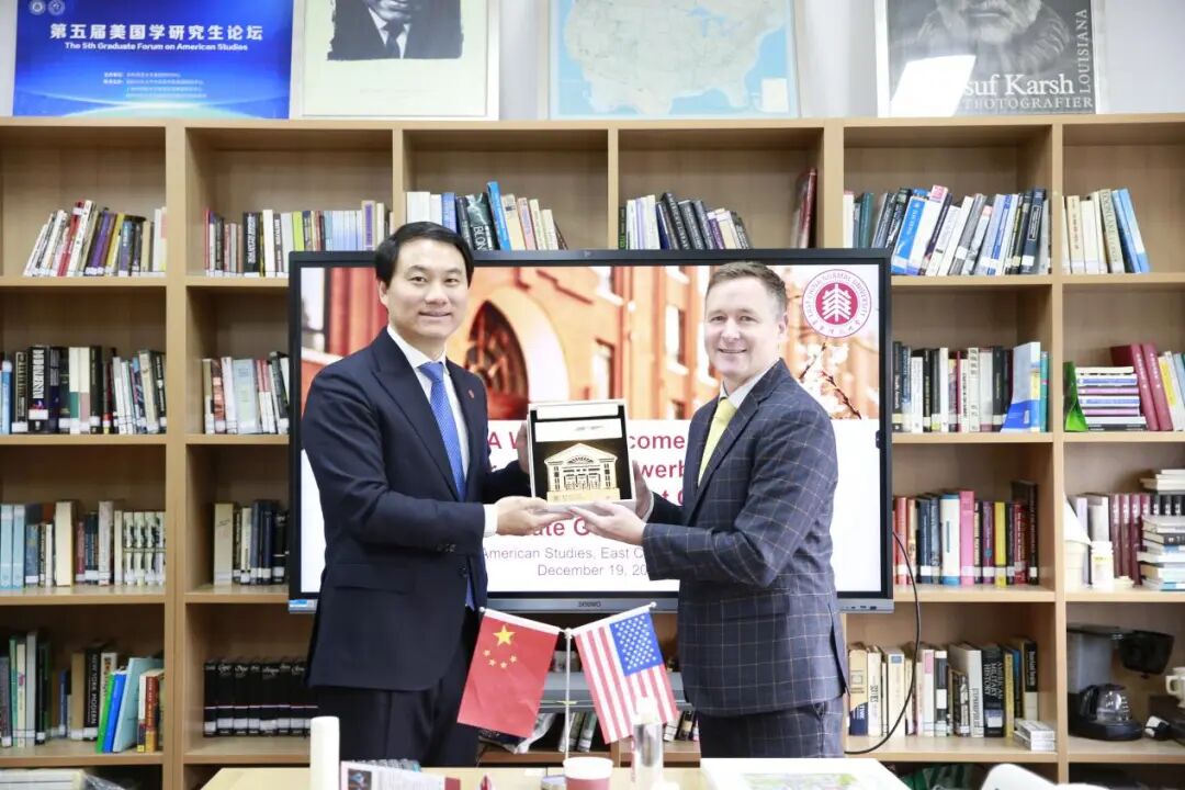 随后,金衡山介绍美国研究中心。他表示,中心长期致力于美国政治、文化、文学与历史研究,已形成一批具有影响力的学术专著与研究项目。他表示,中心愿继续发挥学术桥梁作用,致力于促进中美在教育与学术领域的深度互动。