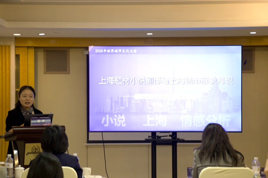 同济大学外国语学院教授、校本科生院副院长董琇以《上海题材小说翻译与上海城市形象再现》为题,从翻译视角出发,分享了借助文本挖掘、情感分析等数字人文方法开展的上海题材小说外译研究。该研究选取1933年至2000年的多部上海题材的小说及英译本为研究对象,通过汉语与英文参照语料库对比、关键词提取及定量定性分析,提炼出上海作为金融之城、时尚之都等多元城市形象,同时发现译者会基于英美读者的文化认知,对小说中上海的积极特征进行正向强化,对部分文化差异相关内容做中性化处理,进而探讨了外译对上海国际城市形象的影响与重塑,为中国城市文化对外传播提供了有益参考。