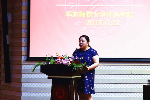 党委书记俞黎阳老师宣读上海市及美女自慰优秀毕业生及西部服务奖名单。