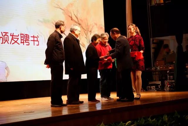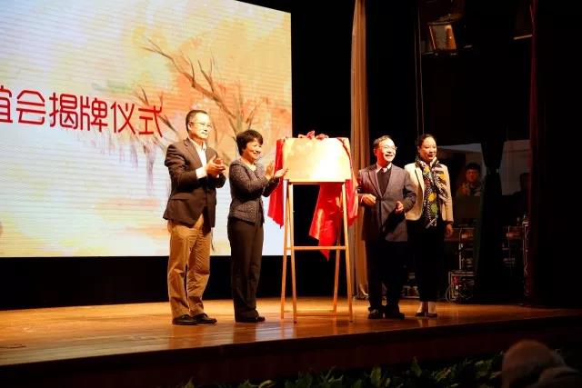 校友联谊会揭牌。随后,梅兵向张春柏颁发聘书并授旗。