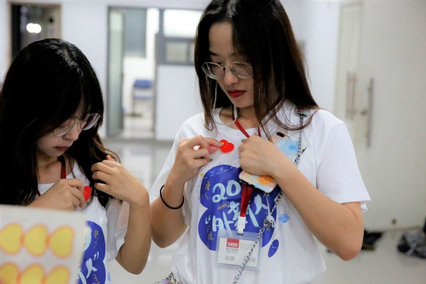 恰逢新中国成立70周年,这一届“外新人”们在《我和我的祖国》华师大快闪视频歌声中踏入大礼堂,熟悉的旋律、视频中华师的美景引人驻足,大家一个个都兴奋地贴上了爱心国旗小贴纸,象征着自己已经成为了一名光荣的外院学子。